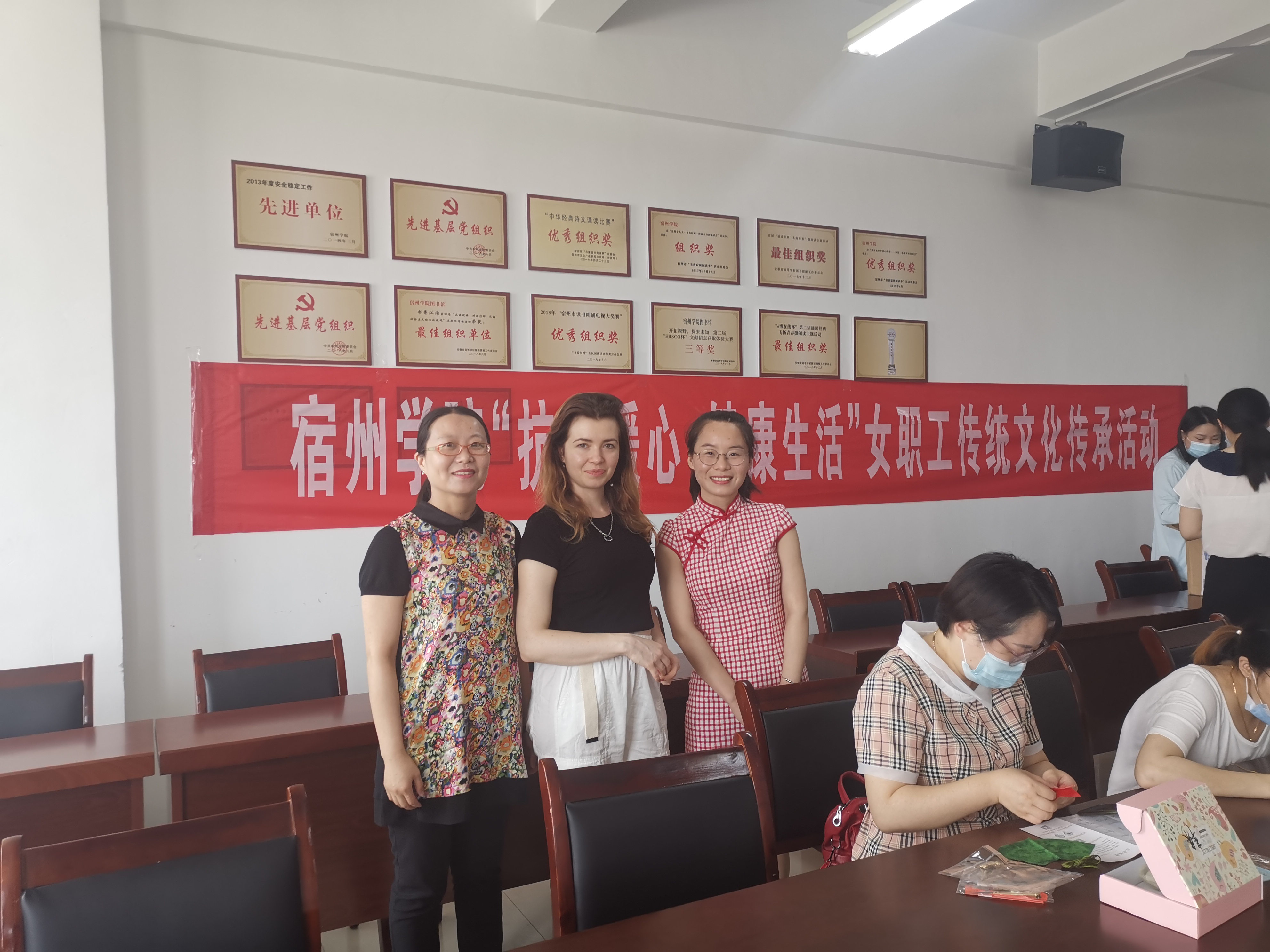 7月1日下午,校工会在东区图书馆502会议室举办了“抗疫暖心 健康生活”宿州学院女职工传统文化传承活动,国际交流与合作处积极组织外籍教师参加此次活动。