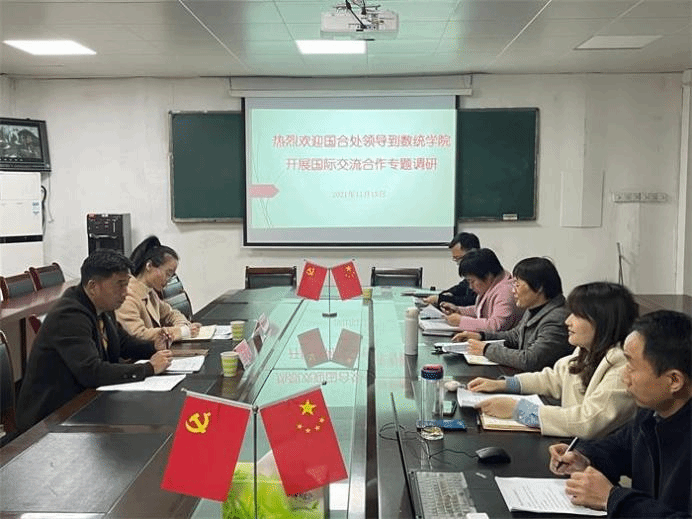 数统学院与会领导表示,学校的发展大任应落在每位师生的肩上,学院将立足实际,充分利用学校各项资源,调动师生积极性、主动性,打造优质特色学院,用学院的长足进步带动学校的高质量发展;同时希望国合处继续在引进和聘请国外优质教师等方面发挥重要窗口作用,进一步提升我校师资力量、优化师资队伍,为学校发展添砖加瓦。