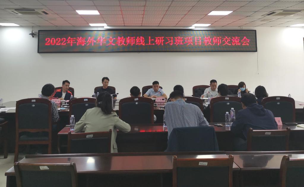 为全力做好国侨办2022年海外华文教师线上研习班项目的后续教学工作,9月23日上午,研习班项目教师交流会在逸夫楼第一会议室召开。研习班授课教师参加交流会,会议由国际交流与合作处副处长(临时负责)安晓斌主持。