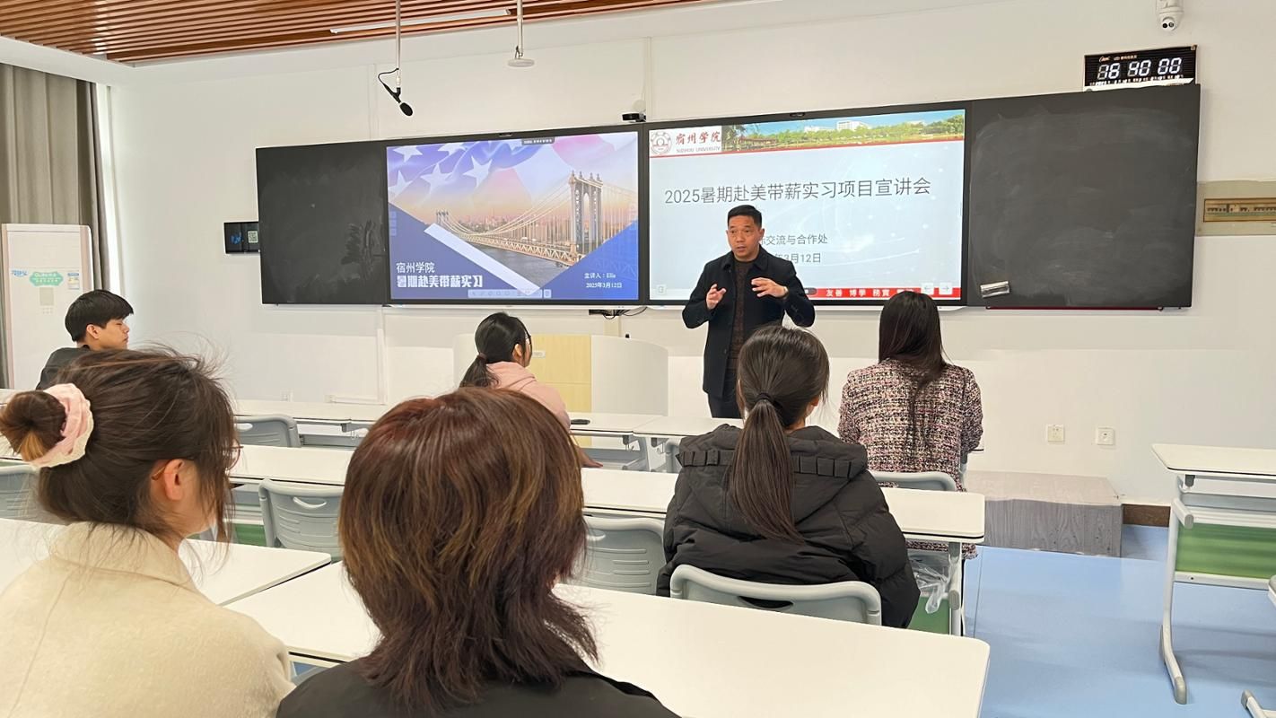 为了拓宽学生的国际视野,提升学生的实践能力与跨文化交流能力,同时为学生提供深度体验欧美发达国家风土人情的机会,3月12日,国际交流与合作处在逸夫楼B209多媒体教室举办了2025年暑期赴美带薪实习项目宣讲会。此次宣讲会吸引了来自多个学院的学生参与。