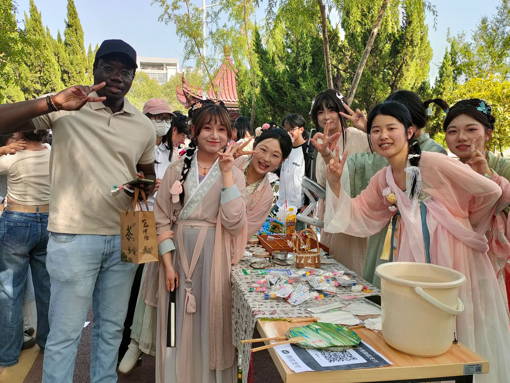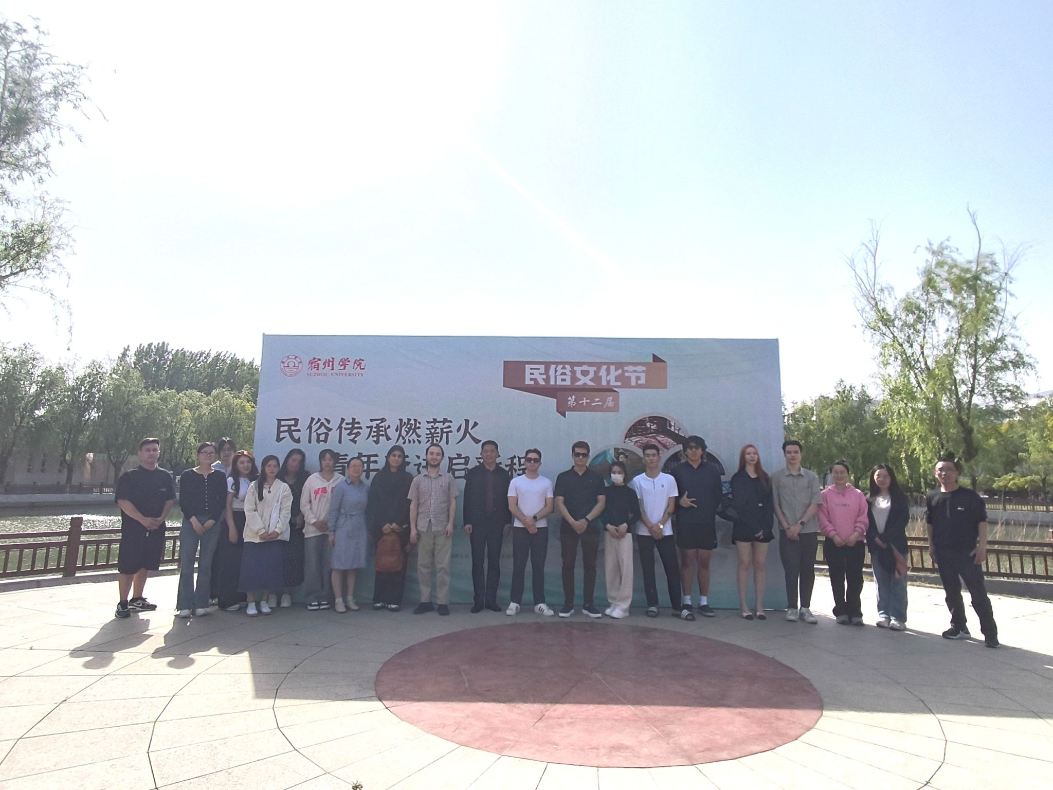 阳光明媚,微风习习,4月16日,宿州学院第十二届民俗文化节在珍珠湖畔隆重举行。国际交流与合作处组织全体来华留学生和部分外籍教师积极参加,共享文化盛宴。