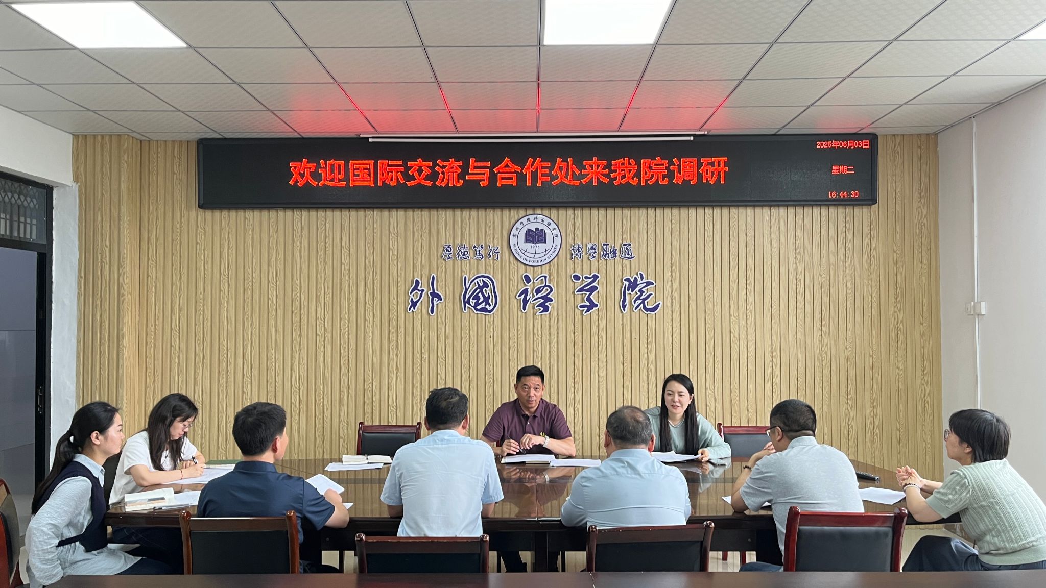 为扎实推进学校高质量发展进程,聚焦国际交流合作重点工作,6月3日,国际交流与合作处处长安晓斌一行赴外国语学院开展国际交流合作专项调研。外国语学院党委书记王金岭,党委副书记、院长胡永近,党委副书记刘钢,副院长宋皓及全体辅导员参加调研座谈。